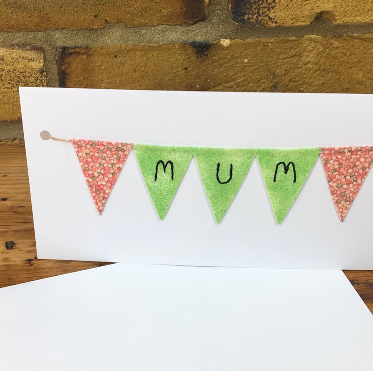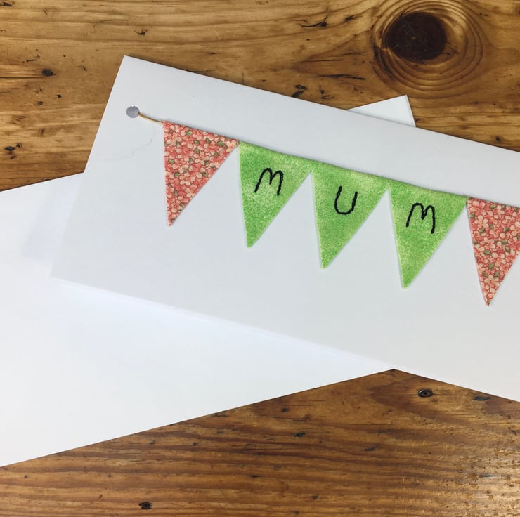 Perfect for your Mum's birthday or Mother's Day this lovingly crafted card doubles as a cherished keepsake gift, adorned with delightful mini bunting flags that can be detached and used as a decoration.
