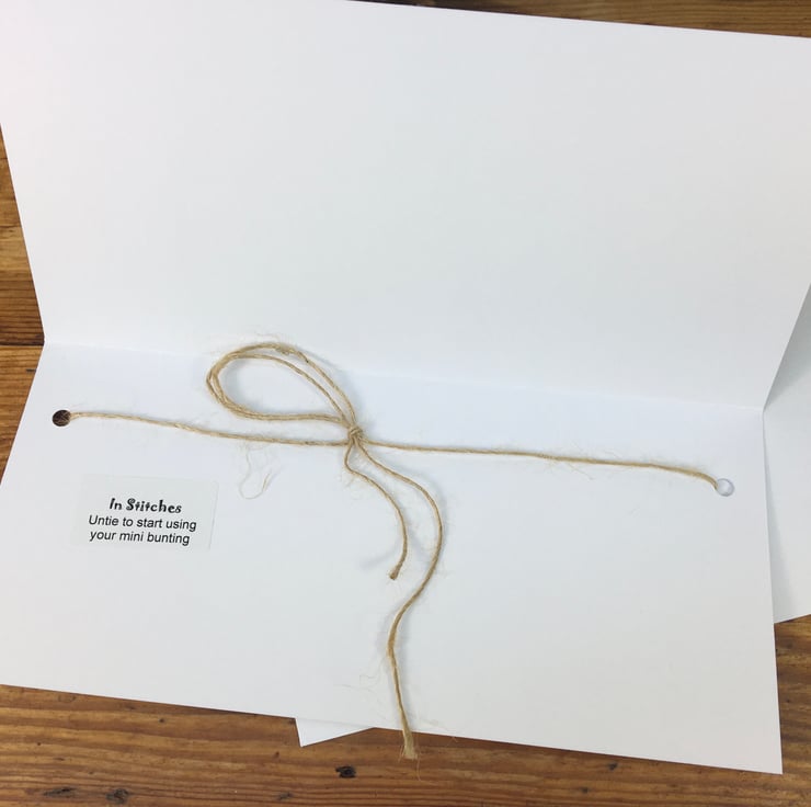 A very special and unique handmade card with the mini bunting easy to untie from the card.