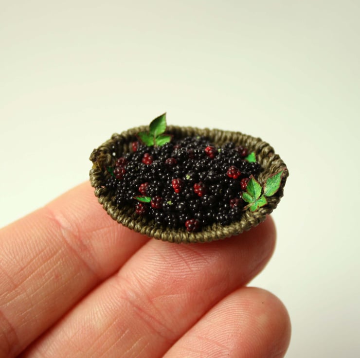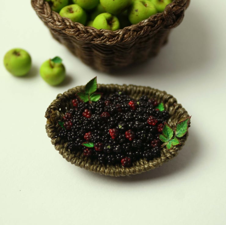 A perfect addition to the apple and blackberry pie making scene, or any 12 scale miniature setting where your little people have been out in their tiny world foraging for tasty little blackberries.
