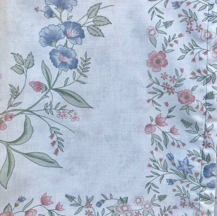 Material: repurposed fabric: 50% cotton 50% polyester.