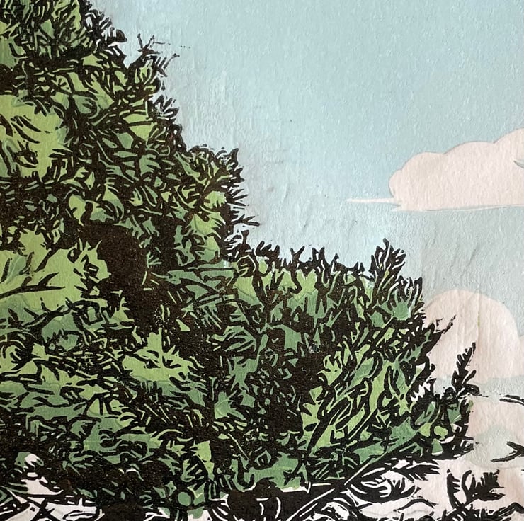 As this image is hand printed there may be slight variations in colour and block placement.