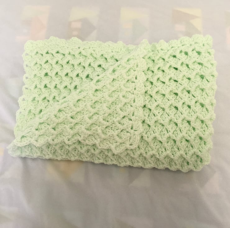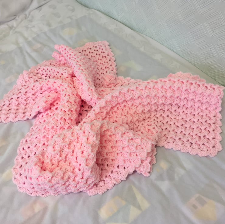 A soft baby blanket in a bouncy, lacy design by Craft and Crochet on You Tube.