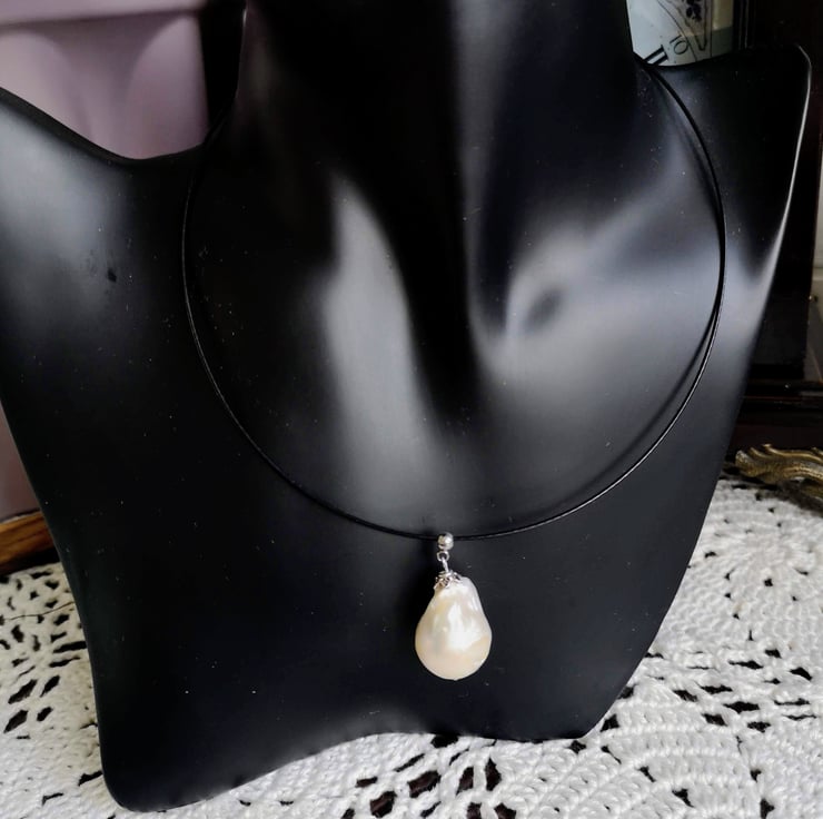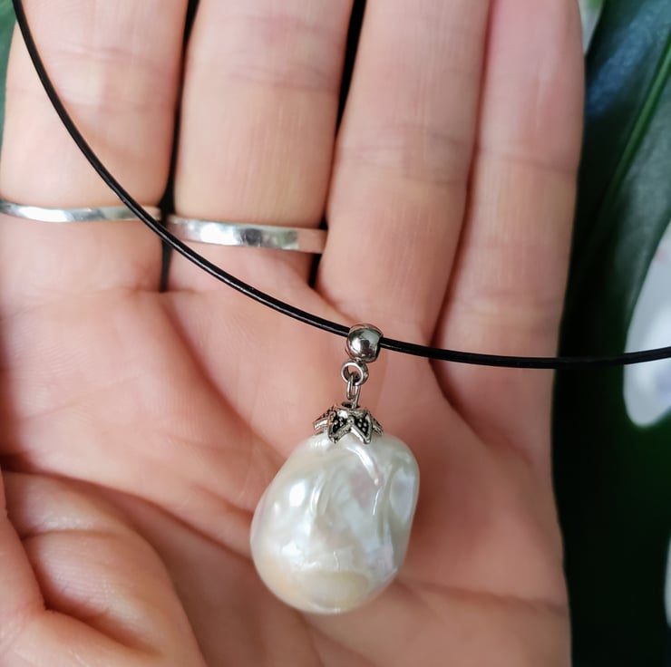 This is minimalistic Baroque Pearl pendant necklace/choker. It is made of black hypoallergenic steel cord and decorated with a large high quality natural baroque pearl.