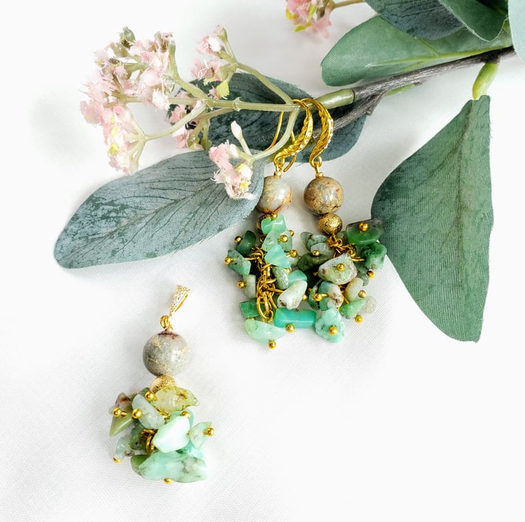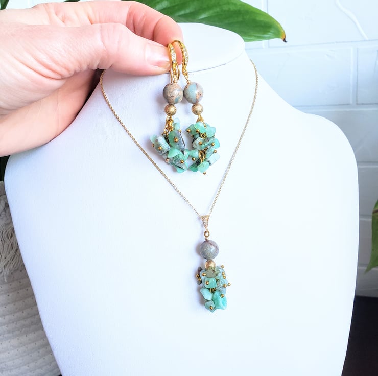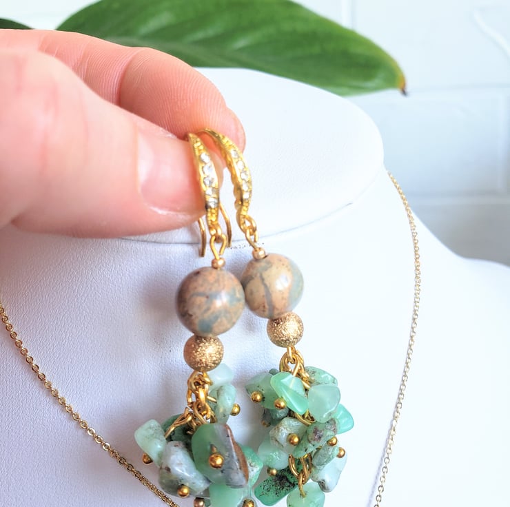 Jade Jasper Jewellery Set Earrings 18K Gold Plated Gemstone Set Jade Necklace