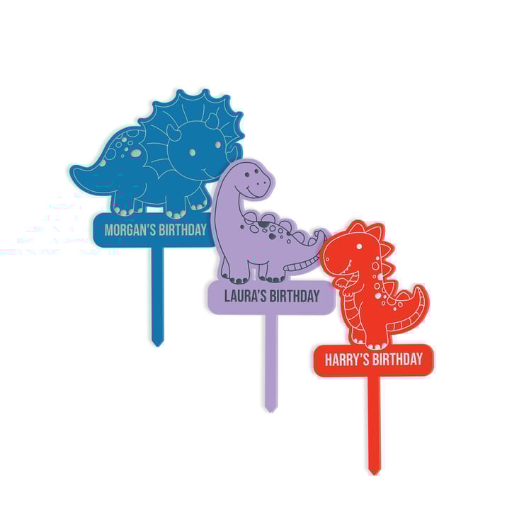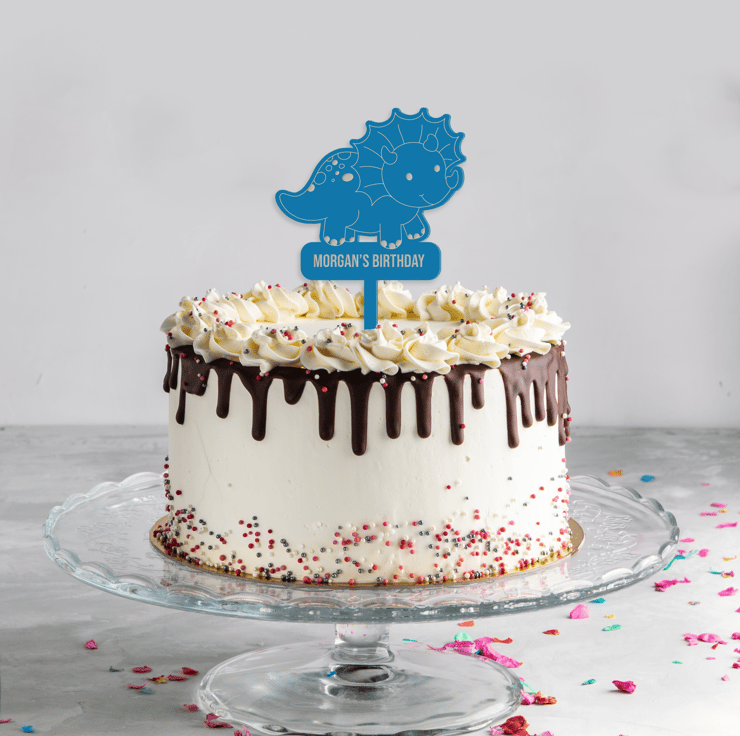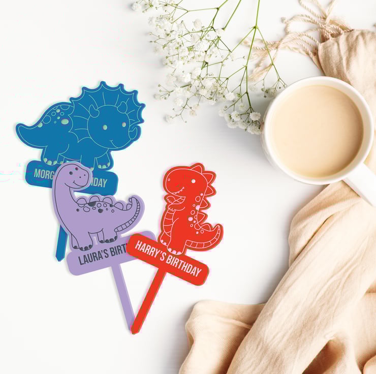 Make your child's birthday roar-some with this adorable dinosaur cake topper, crafted just for them! Each topper is lovingly handmade and personalized with your child's name, adding a unique touch to their celebration.