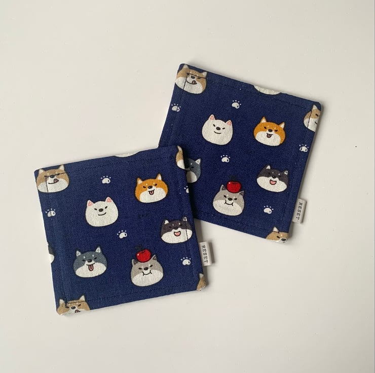 Cute doggy shiba Inu fabric coasters (Set of 2)