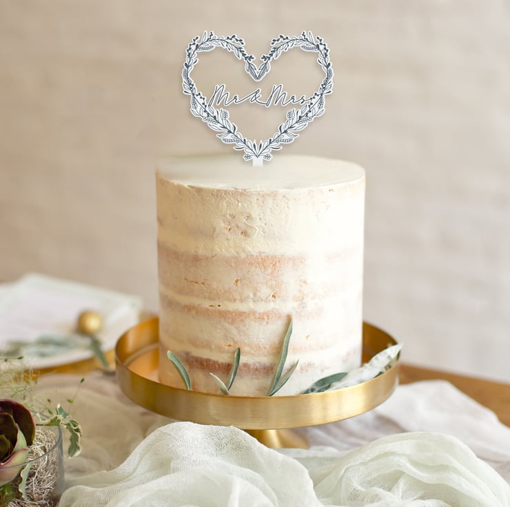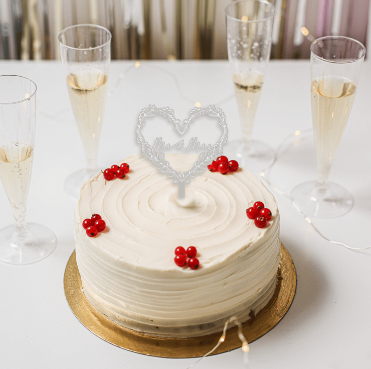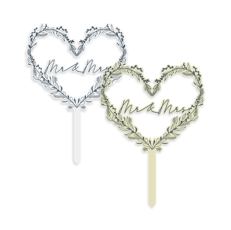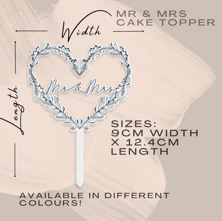 Welcome to our charming collection where love blooms eternally! Elevate your special day with our exquisite Mr & Mrs floral heart-shaped cake topper, meticulously crafted from high-quality acrylic.