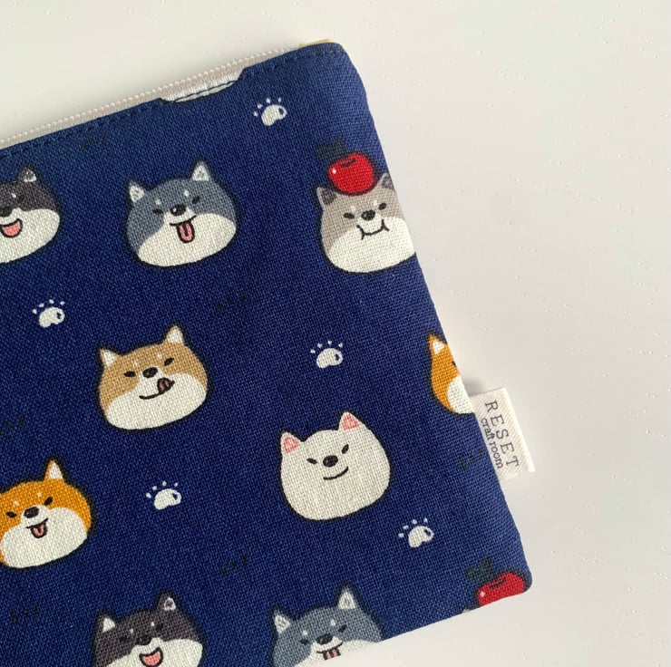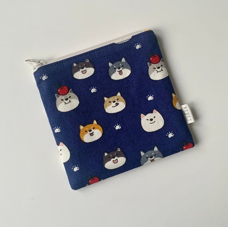 Cute doggy shiba Inu fabric zipped bag, coin purse, pouch bag, makeup bag, cardholder