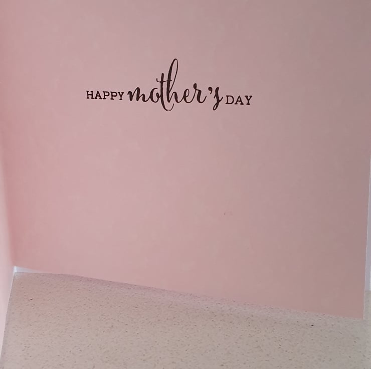 The insert is a pale pink parchment effect paper and is stamped with the sentiment ' Happy Mother's day' the same as the front.