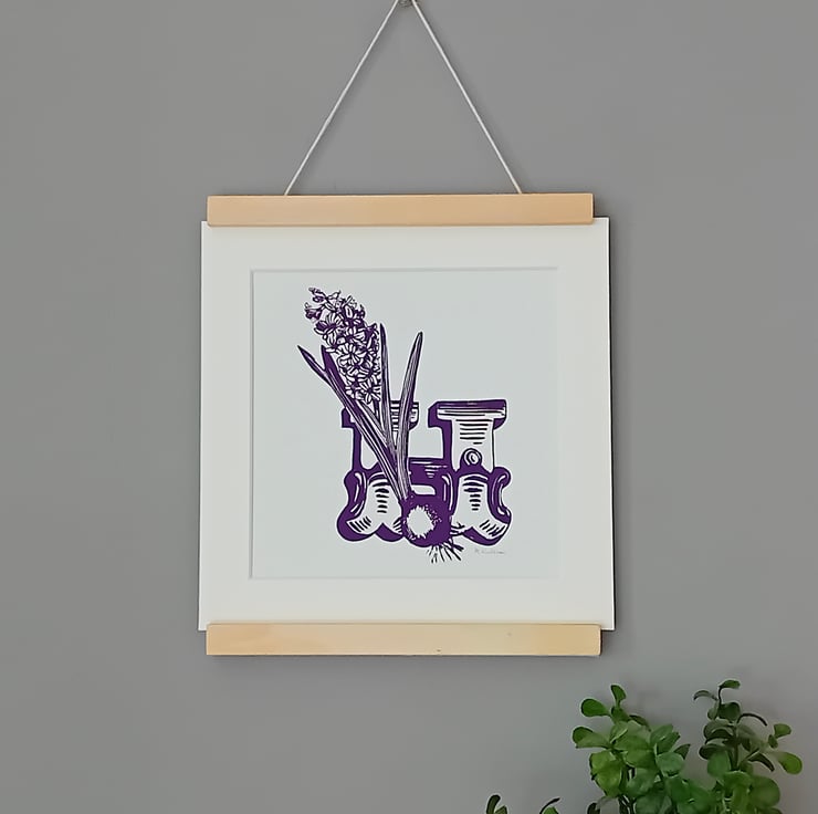 A high quality giclee print, with a carnival style letter H and a hyacinth bulb in flower. Printed in a beautiful purpley blue ink. An ideal gift for anyone whose first name or surname begins with an H.