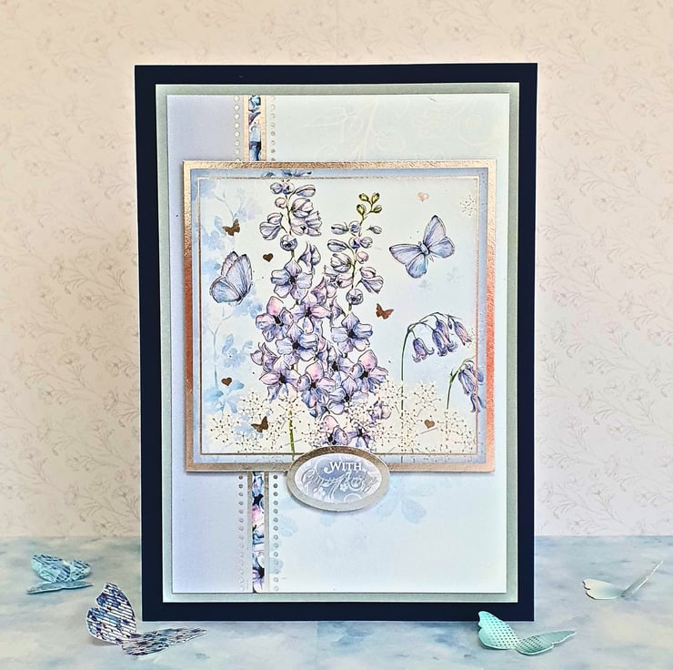 This Sympathy card has been handcrafted by me, using the Hunkydory "True Blue" Deluxe Card Collection.