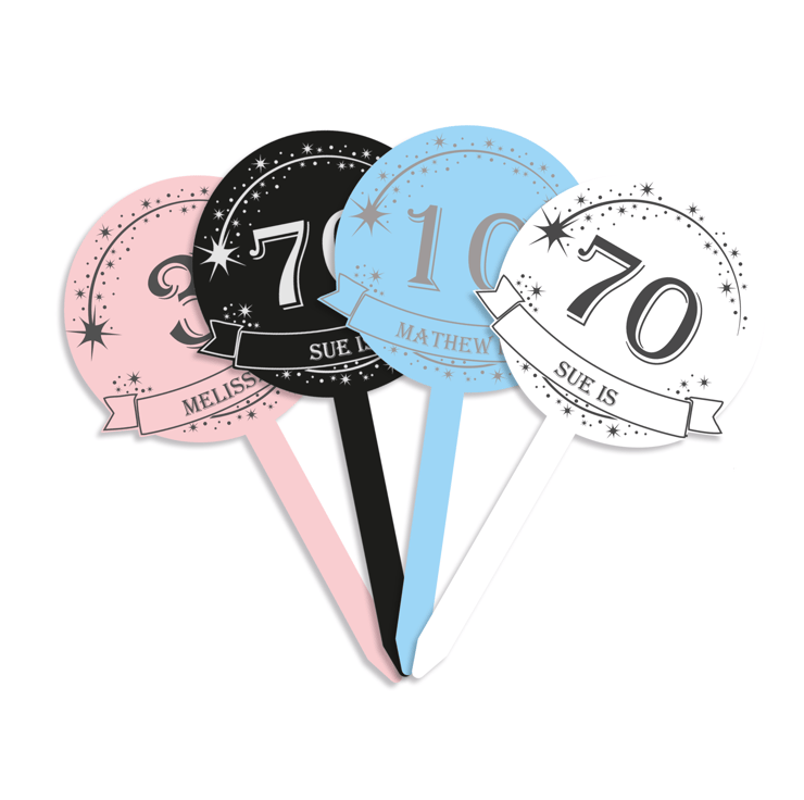 Add a personalised age and name, while choosing what colour will best match your birthday theme.