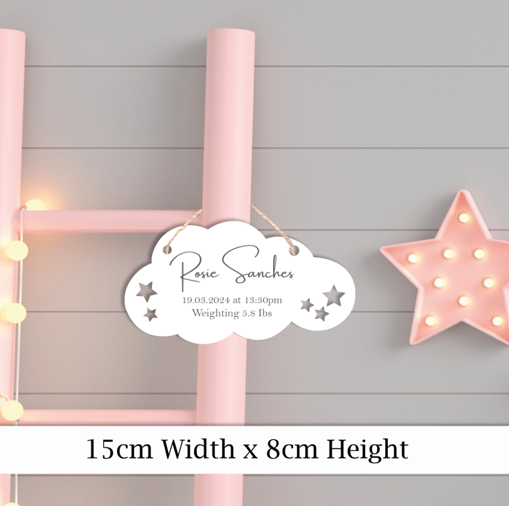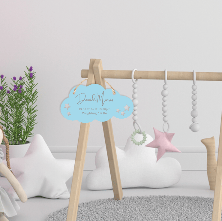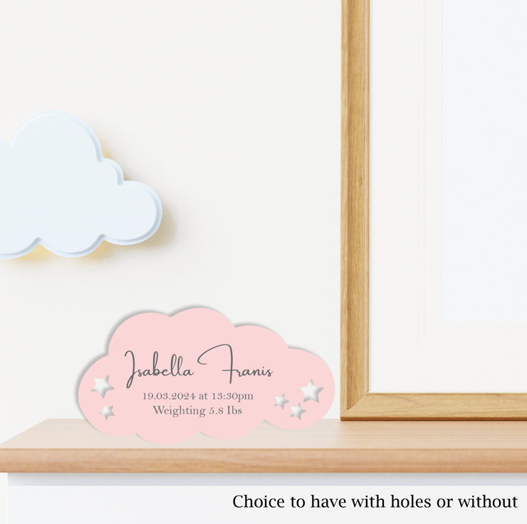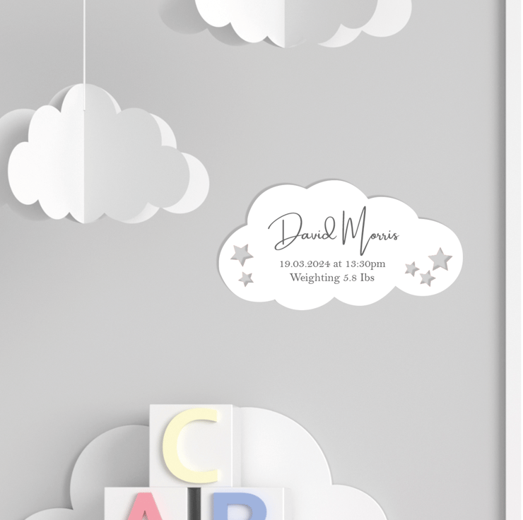 Capture the magic of a newborn's arrival with this lovable acrylic plaque. Shaped like a cloud, it elegantly displays essential baby birth information, creating a timeless keepsake to cherish.