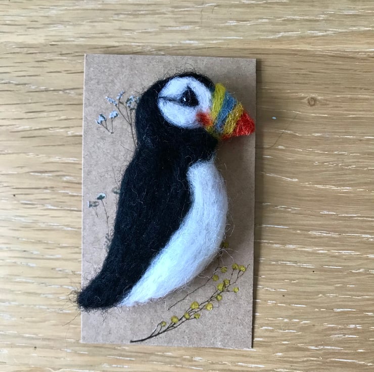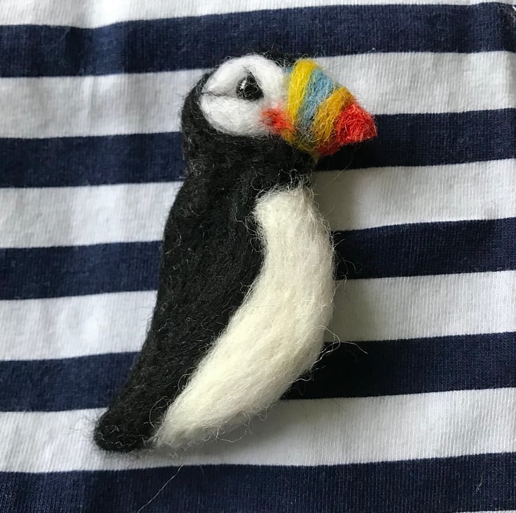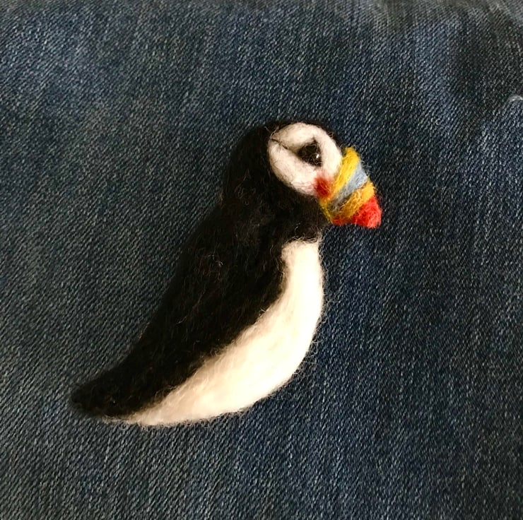 Needle felted puffin brooch , ready to brighten up an outfit.