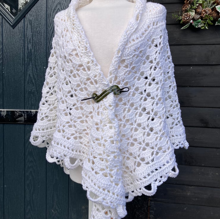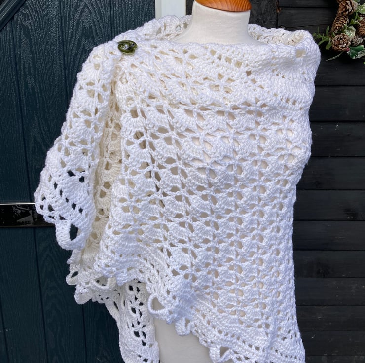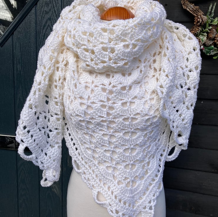 Let's say Hello to the last month of the year with an unique hand knitted shawl scarf in wintery white colours and interesting texture. All my projects are handmade by me and ready to ship as the shawl you see pictured, it is the shawl you will receive.