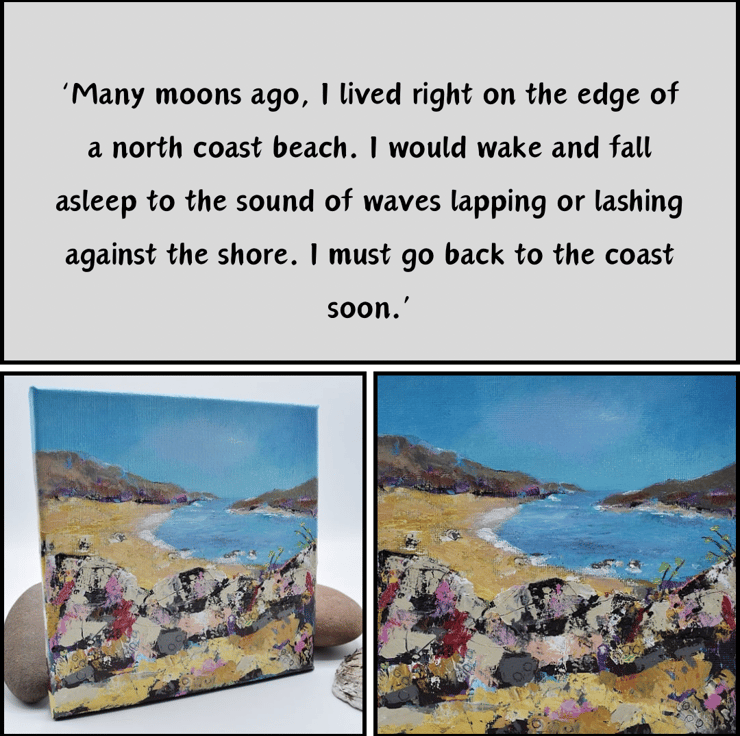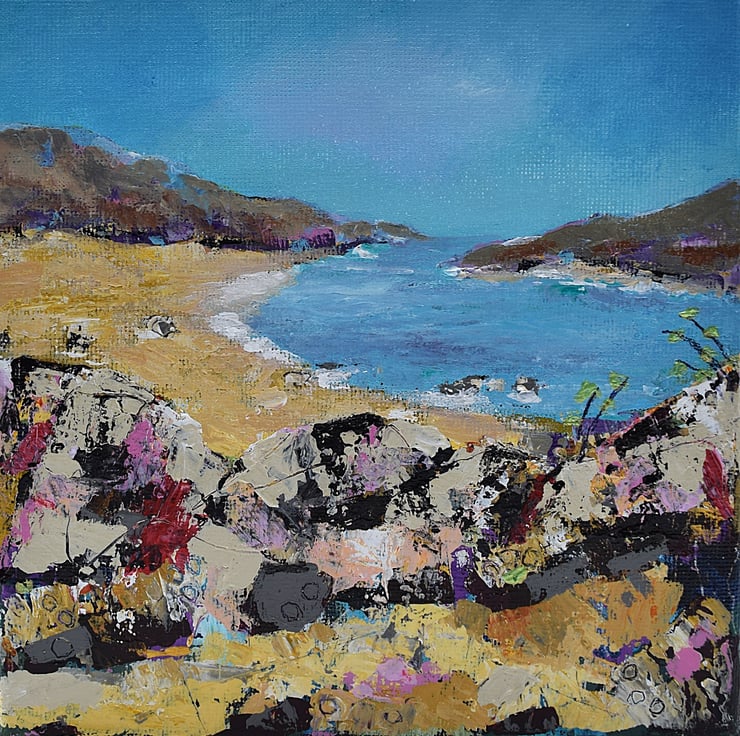 (63) This impasto acrylic painting is based on visits to west coast Scottish beaches on a sun-kissed days. I've called this original painting, 'At A Loose End' because visiting the coast is a perfect way to spend time. This would make an ideal gift for any occasion.