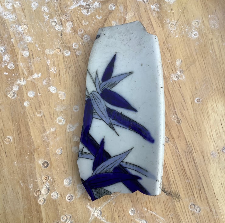 Hand crafted Jewellery and framed artworks using pre loved and discarded ceramics. Ceramic material will show signs of wear and damage. Entire process is a creative experience from discovery to final picture, nothing planned or preconceived. All materials personally collected from river banks, charity shops, roadside, woods, recycle centres, beaches, wherever dropped, dumped or donated ceramics are found, cleaned and shaped into new stories. Each piece comes with a short bio of where the ceramic came from, date found and re-created. Some shards collected are used as found, others are cut randomly which shape the final work. Every piece is individual, nothing replicated, however, due to repetitive patterns in ceramics there will be some similarity but only through the ceramic material not in the final piece.