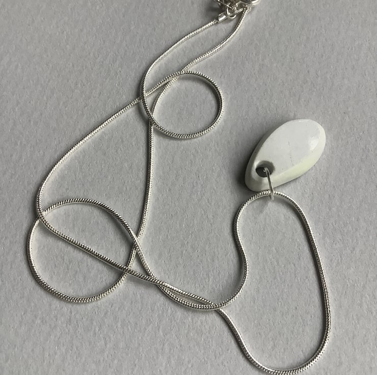 Hanging on 18 inch recycled sterling silver 925 snake chain.