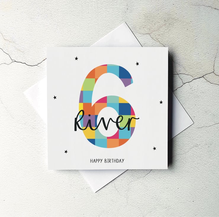 This bright and fun birthday card is perfect for bright and fun 6 year olds! This colourful card will be personalised with child's name and age, a sure contender for their favourite birthday card!