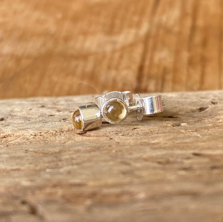3mm studs, in 100 % recycled silver cups. Available with Citrine, Amethyst or Peridot. Please specify when ordering.