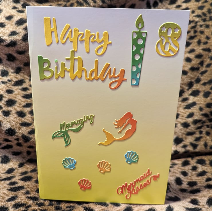 Mermazing birthday card for 8 year old with FREE MERMAID PIN