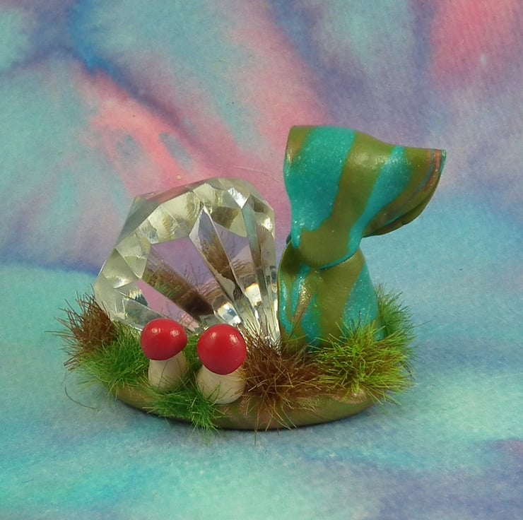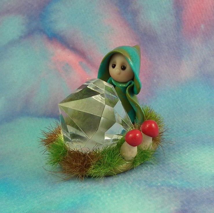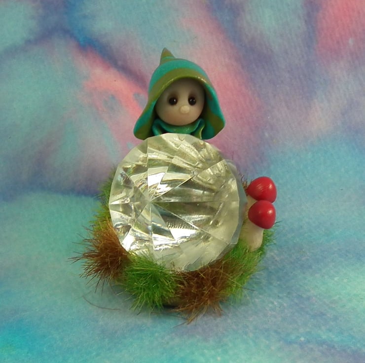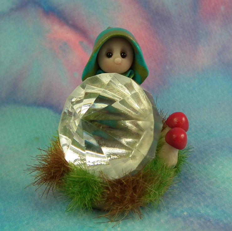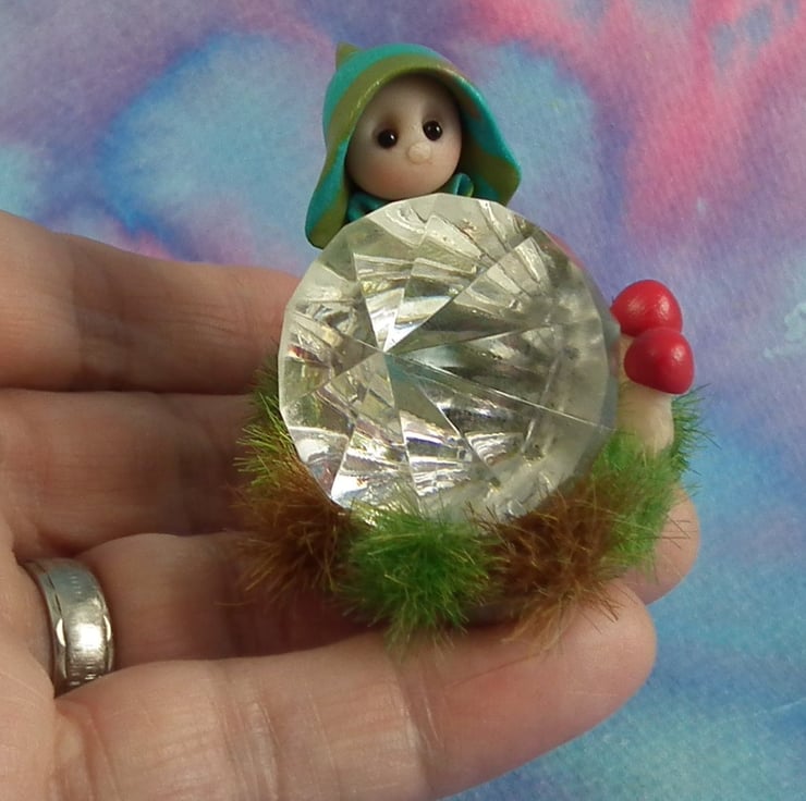 This is a 'one of a kind' creation having been entirely handmade without the use of moulds here at my studio on the Sussex Coast. Modelled with artist blend polymers, blushed before sealing with lacquer, Rhonda has sparkling black onyx eyes. Rhonda the Garden Gnome is just one and a half inches tall, fixed on grassy base with crystal.