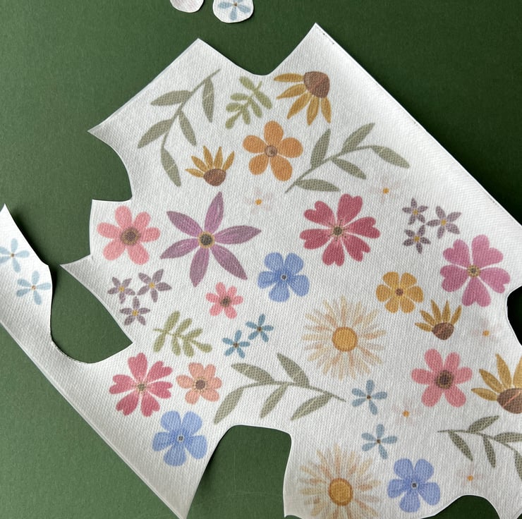 An A4 sheet of multiple wildflower designs and foliage for you to cut out and arrange as you choose on your garments and embroidery projects.