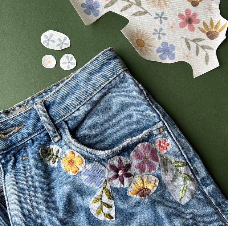 Simply cut out, stick to your project, stitch and wash away!