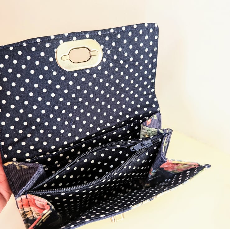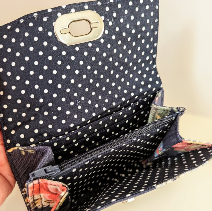 This is a lovely accordion style purse made in Cath Kidston Kentish Rose fabric.