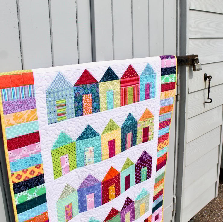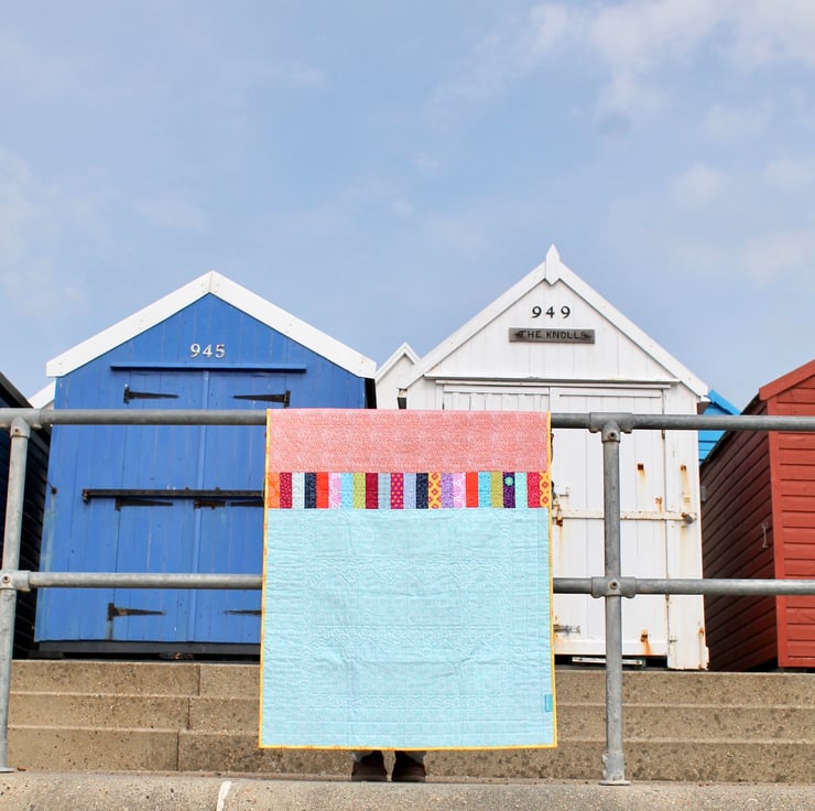 A day at the English seaside, with its rows of brightly painted beach huts, was my inspiration for this cheerful, summery quilt. The perfect size for a cot quilt or playmat, it would suit a little girl or a boy, but it's also grown up enough to work as a wall hanging in a garden room, summer house... or even a beach hut!