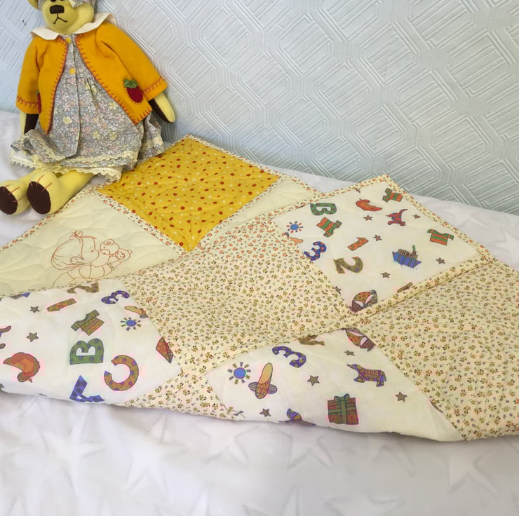 Sunny Quilt for a Little Girl. Cosy Wrap, Bed Coverlet, Comforter, Play-mat.