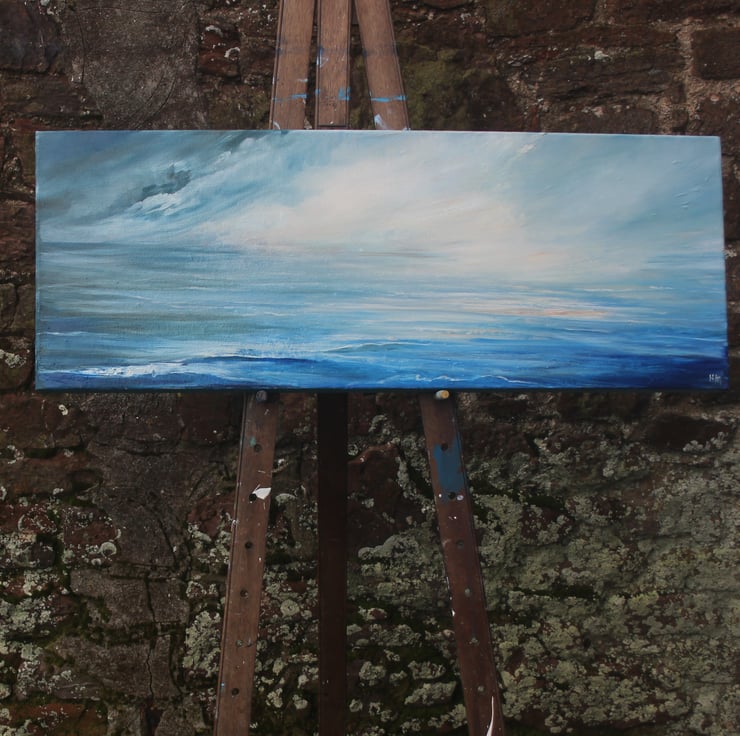 Panoramic seascape, oil on canvas, painting size 30x80cm (deep/box canvas).