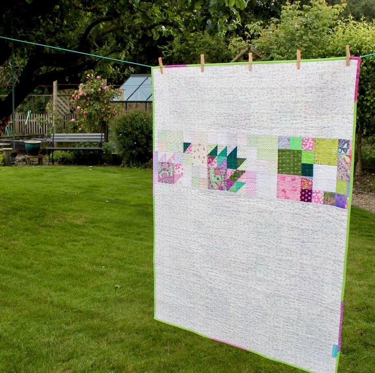 This is my contemporary take on a very traditional quilt block: the bear paw. I've taken the age-old design and brought it right up to date using bright, co-ordinating colours. The background is a super scrappy mix of 'low-volume' prints. The result is a contemporary quilt that would look at home in a modern nursery or a boho interior. It would work equally well as a child's quilt, sofa throw or wallhanging.