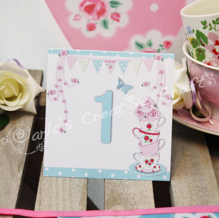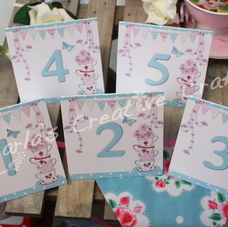 The table numbers have a unique afternoon tea theme which I have designed and illustrated myself. They can be used for any celebration eg: weddings, birthdays or anniversaries. They make great decoration's for any table.