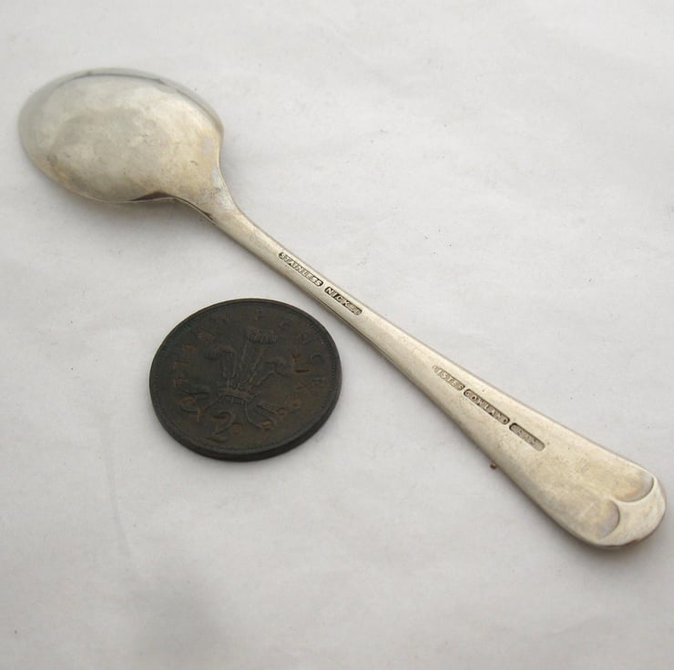 This listing is for ONE handstamped teaspoon (approx. 13cm). You will receive the spoon shown in the photographs. The lettering is coloured black with waterbased, non-toxic acrylic paint. Please wash carefully by hand and don't scrub the wording too hard. Please also note that this is a vintage spoon so it has a few wear marks and some residual tarnish and it is never going to polish to a bright silver colour because of its alloy composition... It will carry on to give you many years of stirring service though.