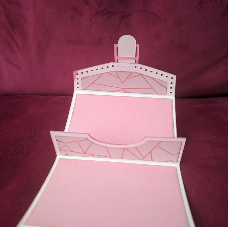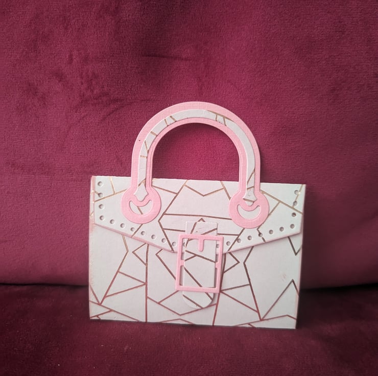 3 3/4 x 2 1/2 inch gift card holder in pink card stock with metallic rose gold zig zag pattern