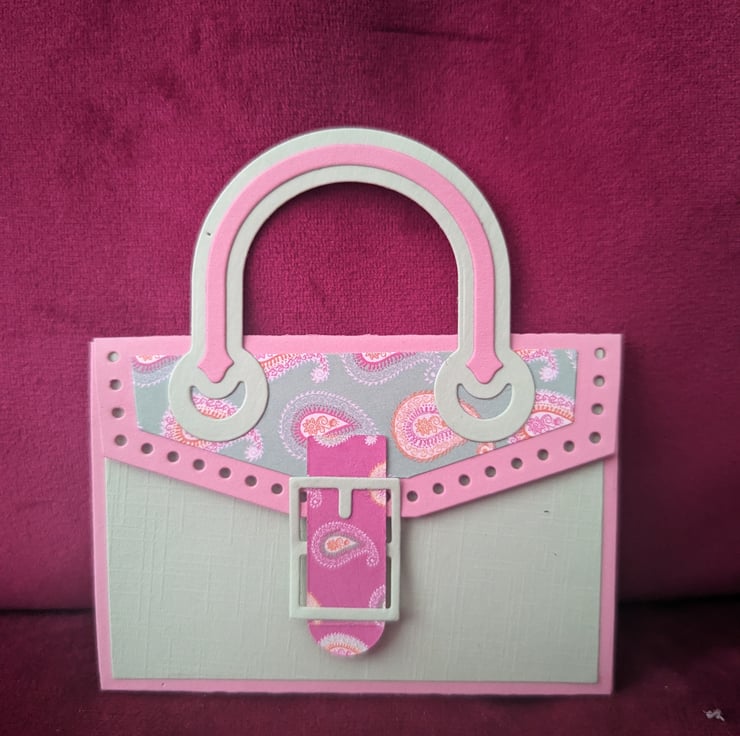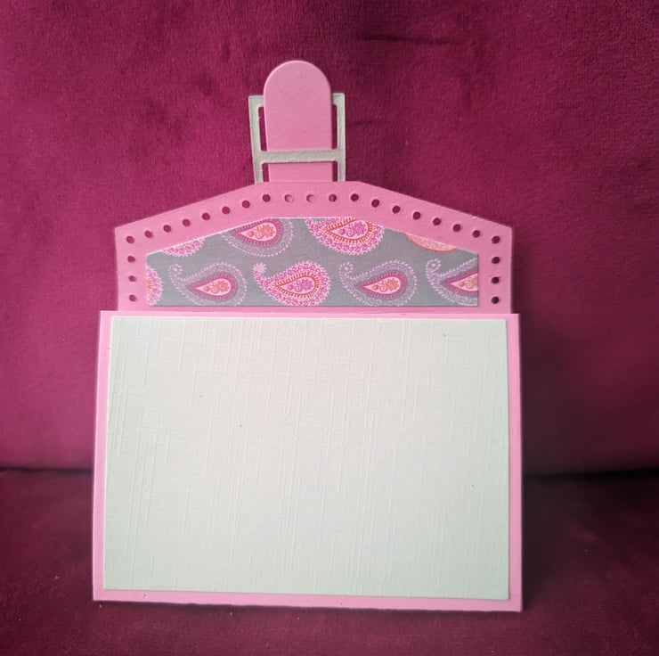 3 3/4 x 2 1/2 inch gift card holder in baby pink card stock, mint card stock and light green and pink paisley car stock throughout
