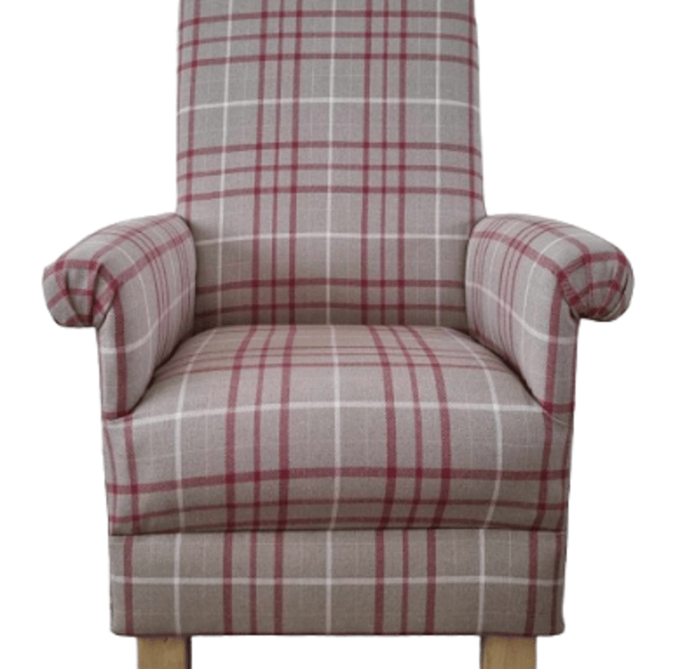 This is a handcrafted, sturdy adult sized armchair, which has been made by myself, a professional upholsterer with over 32 years experience, using Laura Ashley Keynes Cranberry Check fabric.