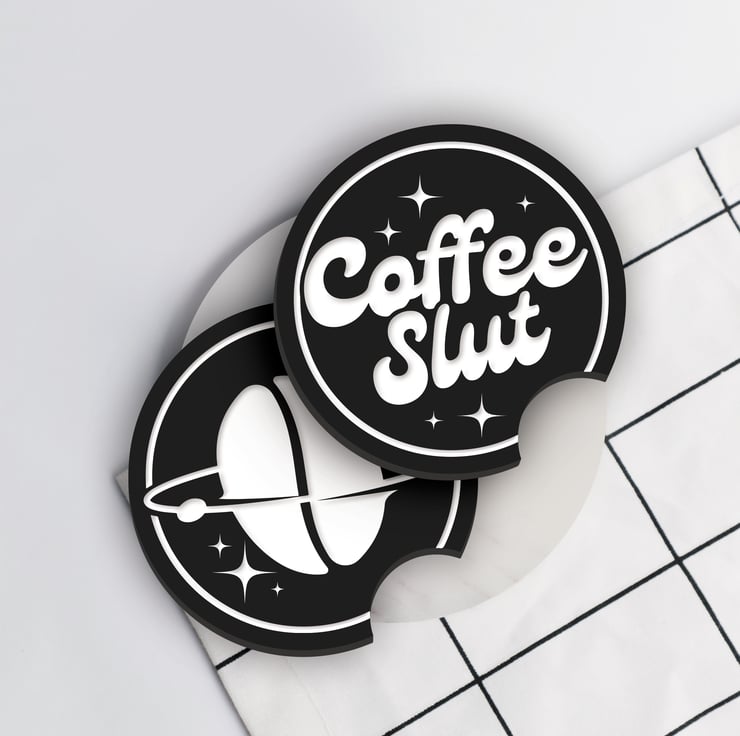 Elevate your coffee obsession with our Coffee Slut Car Coasters Set! This unique duo of acrylic coasters is designed for the true coffee enthusiast. Each coaster is engraved with the cheeky phrase "Coffee Slut," making them the perfect addition to your car's cup holders.