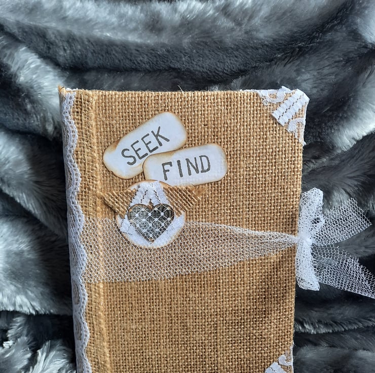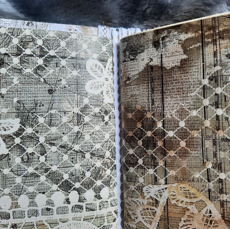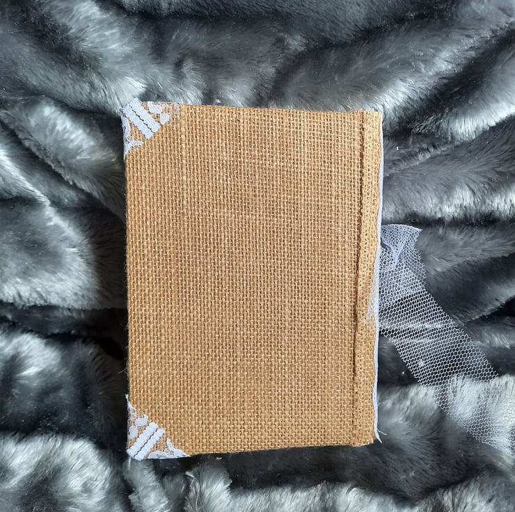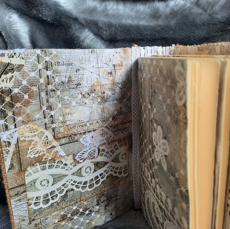 5 x 6.5 inch journal with a one inch rounded spine, with lace corner edges