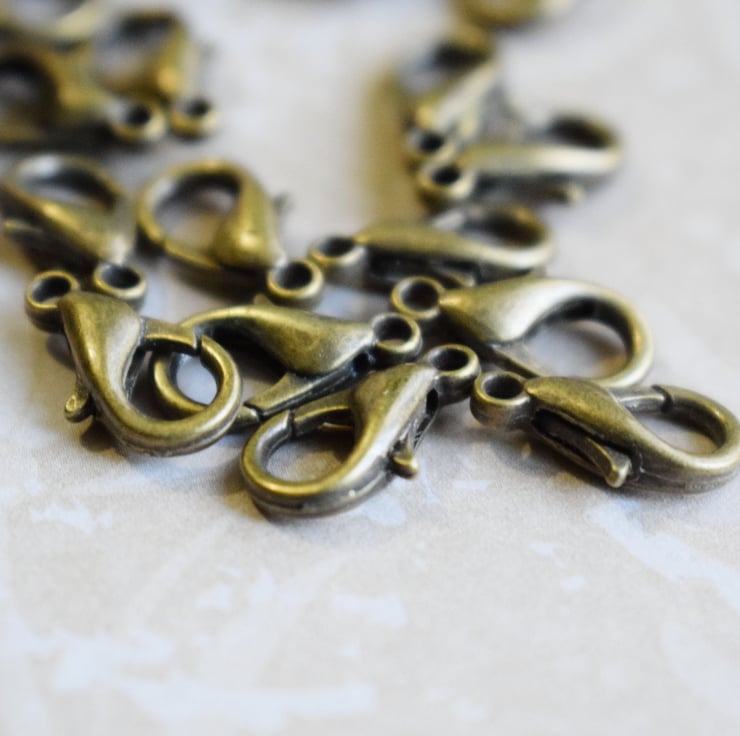 This is for a pack of 10 bronze plated lobster claw clasps that are nickel and lead free. They measure approx 15mm in length and are nice and sturdy, they are the same ones that I use in my own jewellery. There is no additional postage on these so you can buy as many sets as you like!