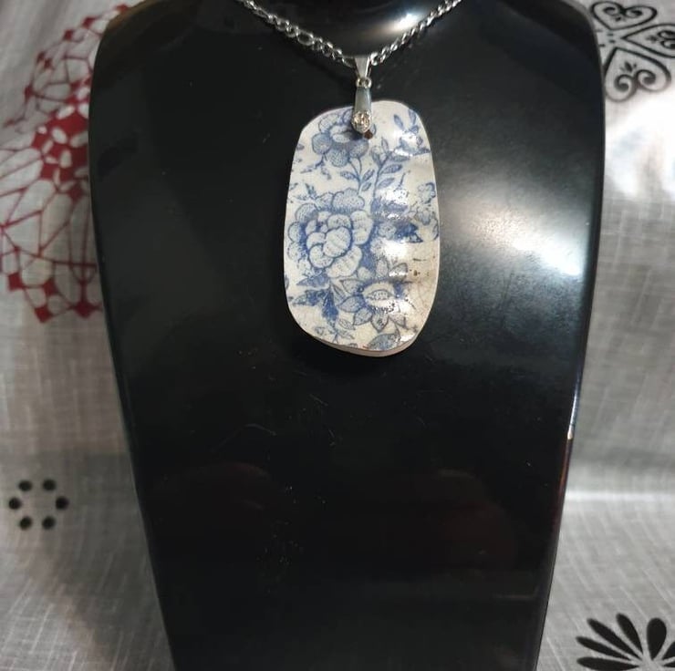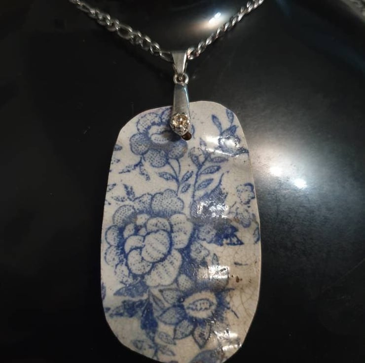 This piece was cut down from a piece which was really chipped. I found it while mudlarking near a local canal. I added a silver coloured bail and a stainless steel chain