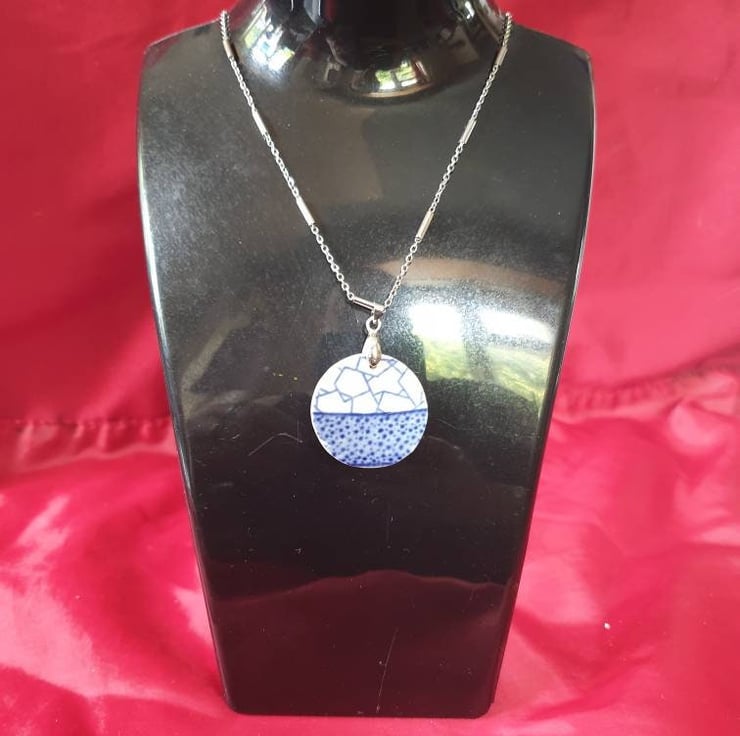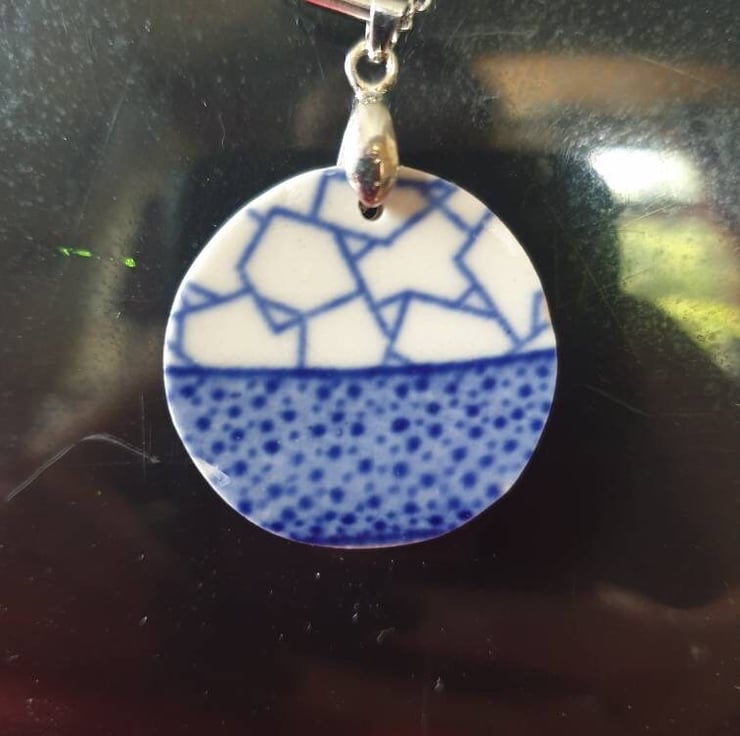 This piece was found in the woodland between a local river and the canal. I attempted to do something with this piece by working it more and cutting it into a circle before adding a stainless steel chain.