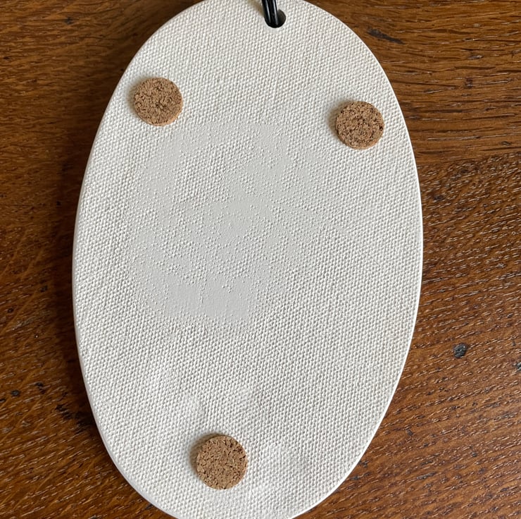 Self-adhesive cork has been applied to the back to protect surfaces.