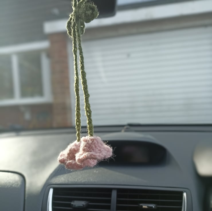 This flower charm is handmade from acrylic yarn, with adjustable leaves to allow you to put it on lots of things, it is approximately 8 inches in height when hanging
