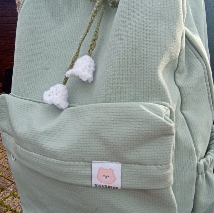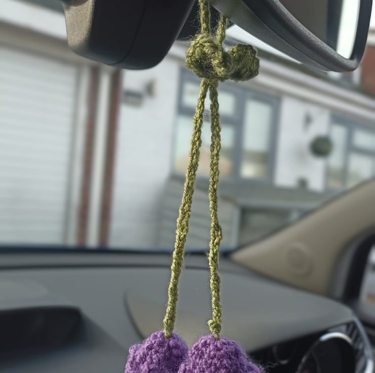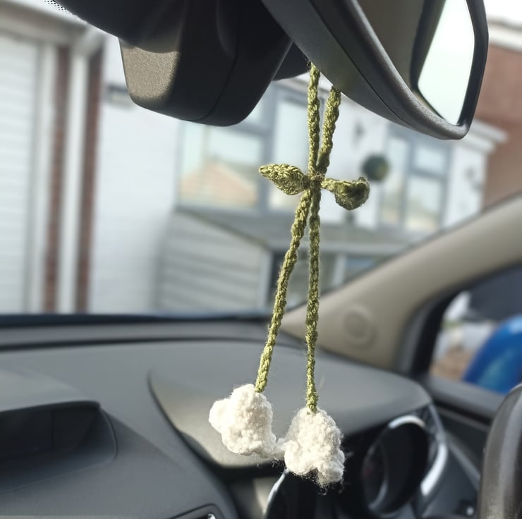 Crocheted Lily of the Valley charm, Car accessory, Bag Charm, Headphone accessory.
