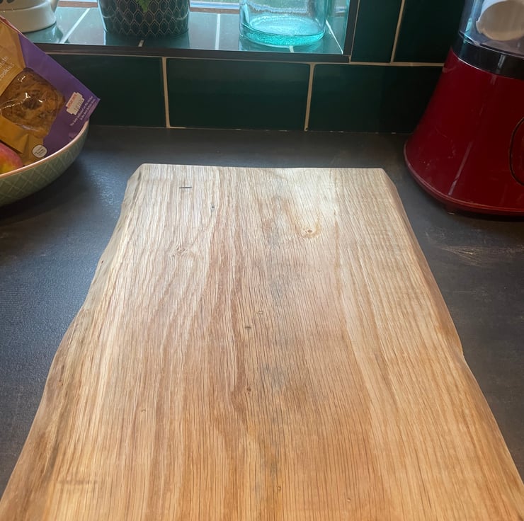 This is a solid Oak live edge chopping board, it will last years with proper care and will grace any kitchen or table.