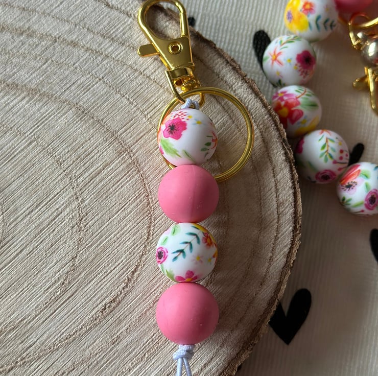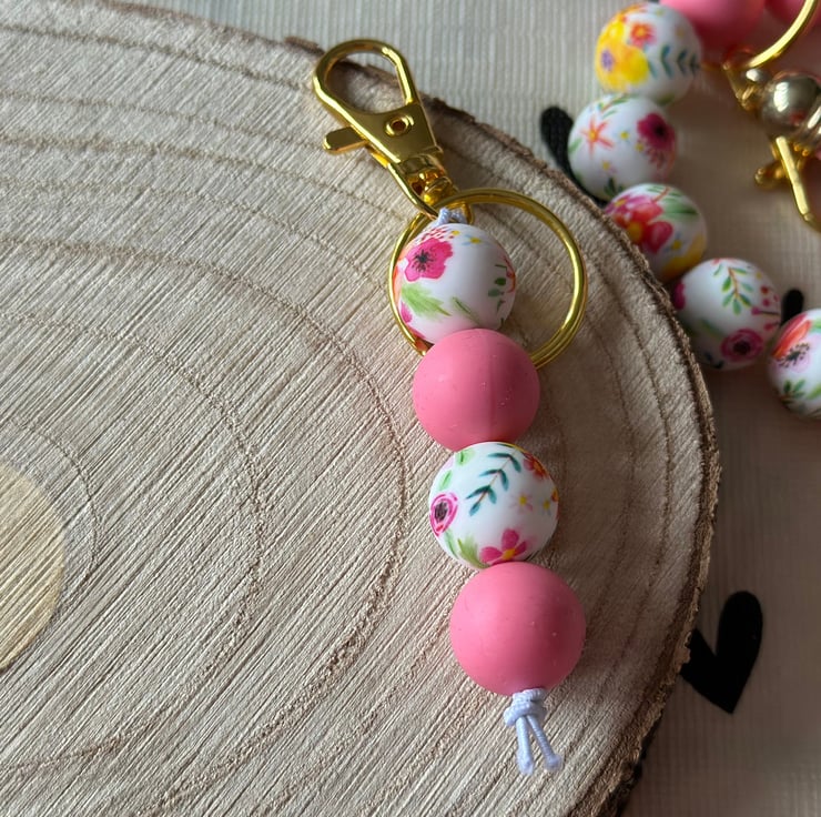 Each keyring is made using stretchy cord with a swivel snap hook andor the following: acrylic beads, silicone beads