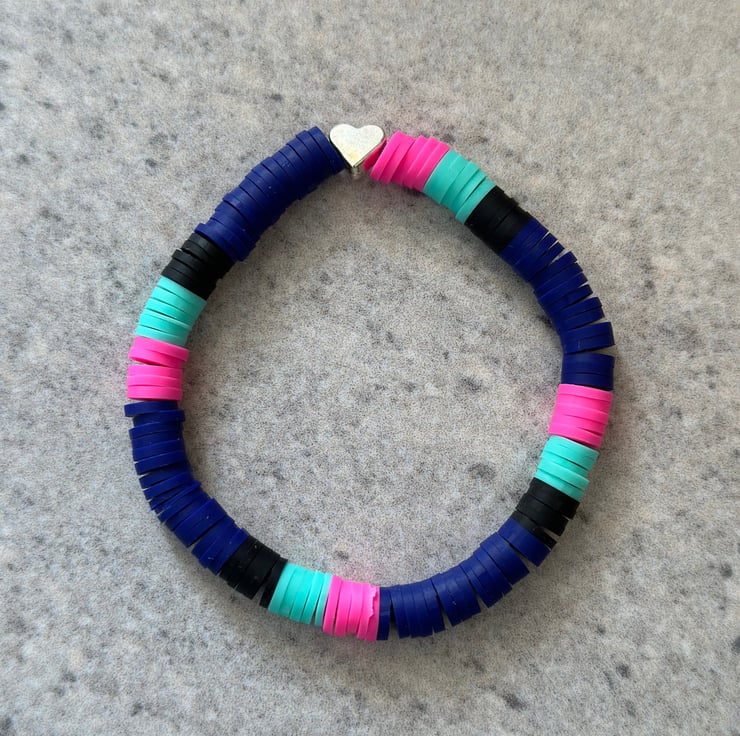 Each bracelet is made using elastic cord for ease when wearing andor the following: polymer clay disc beads, acrylic beads, plastic or metal charms.