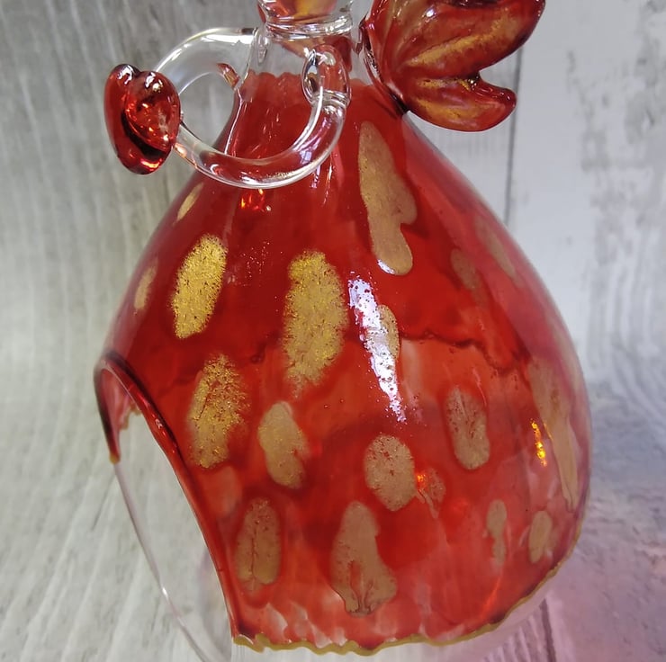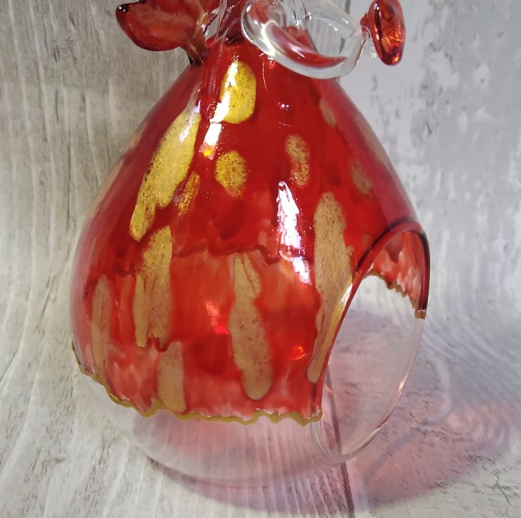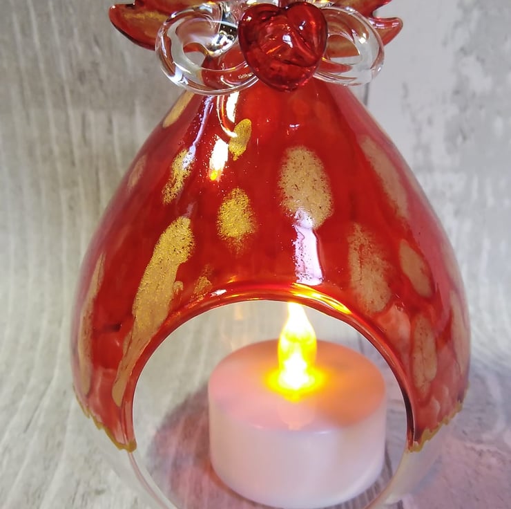 This beautiful angel tealight holder is hand painted with a rich vibrant red and then finished with shimmering peach/gold paint. The bottom of her skirt is edged with gold outliner. She comes with a battery operated tealight and in a gift box. The perfect gift for Mother's Day or a Birthday or Anniversary gift. She would also be suitable for a memorial gift to remember someone special.